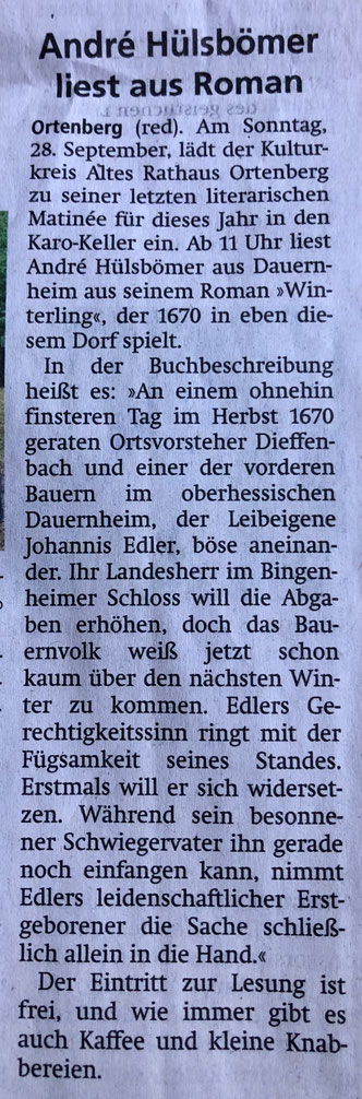 André Hülsbömer liest aus seinem Roman "Winterling"